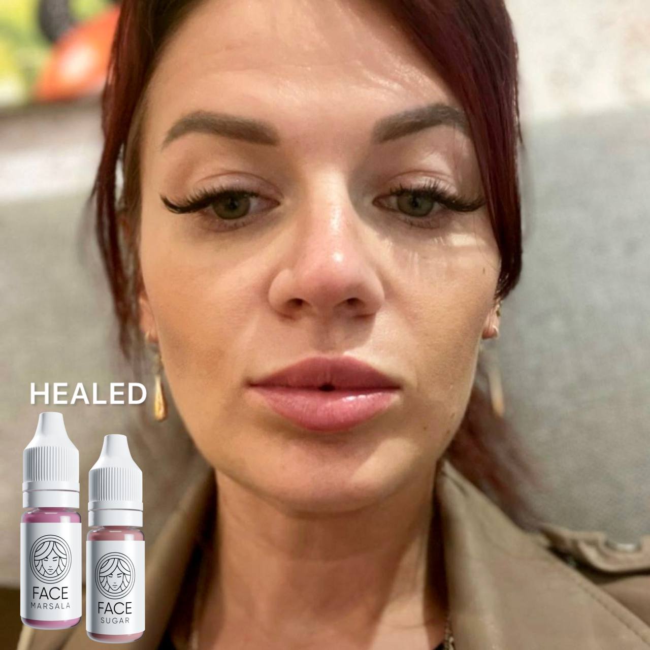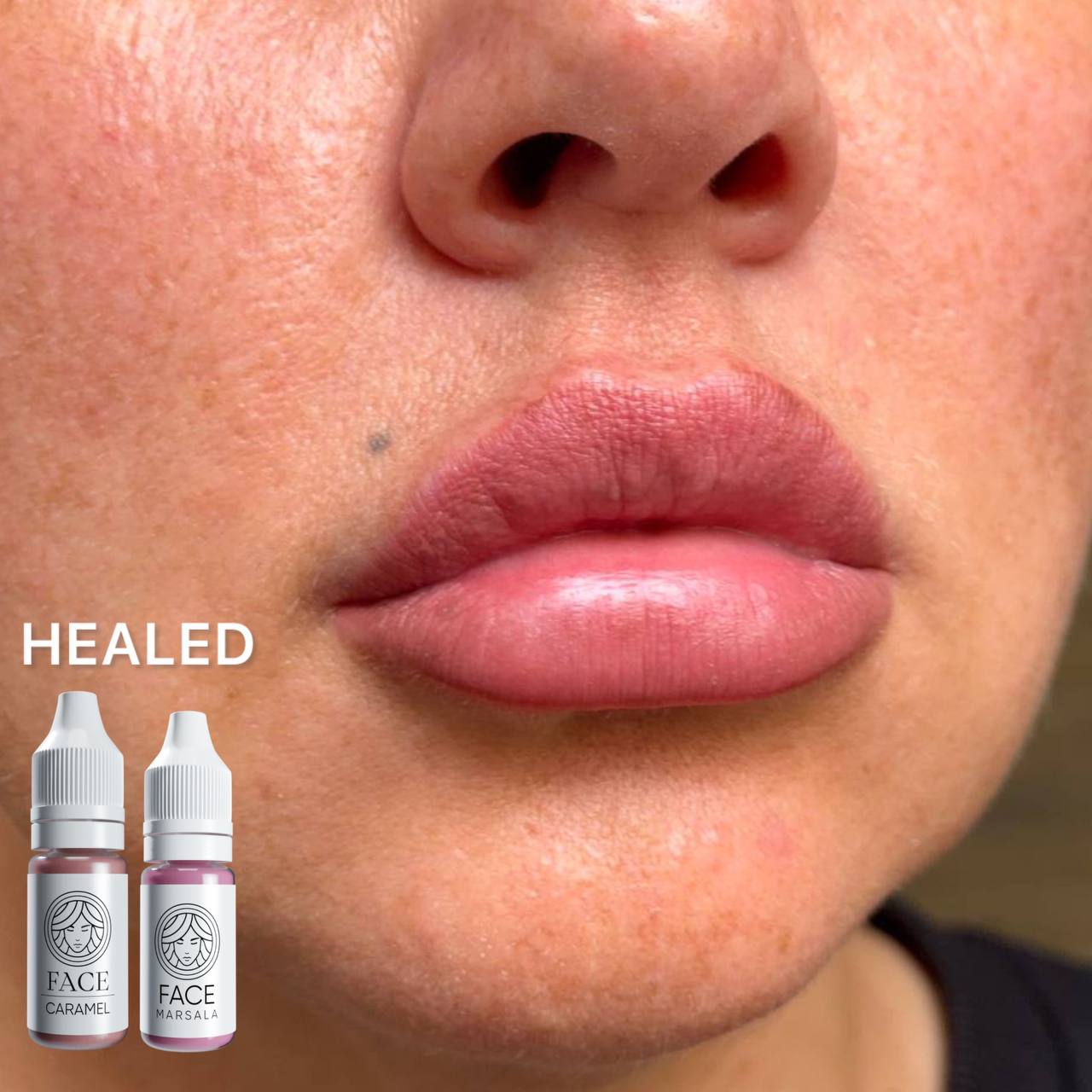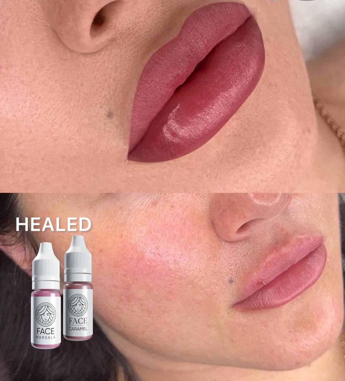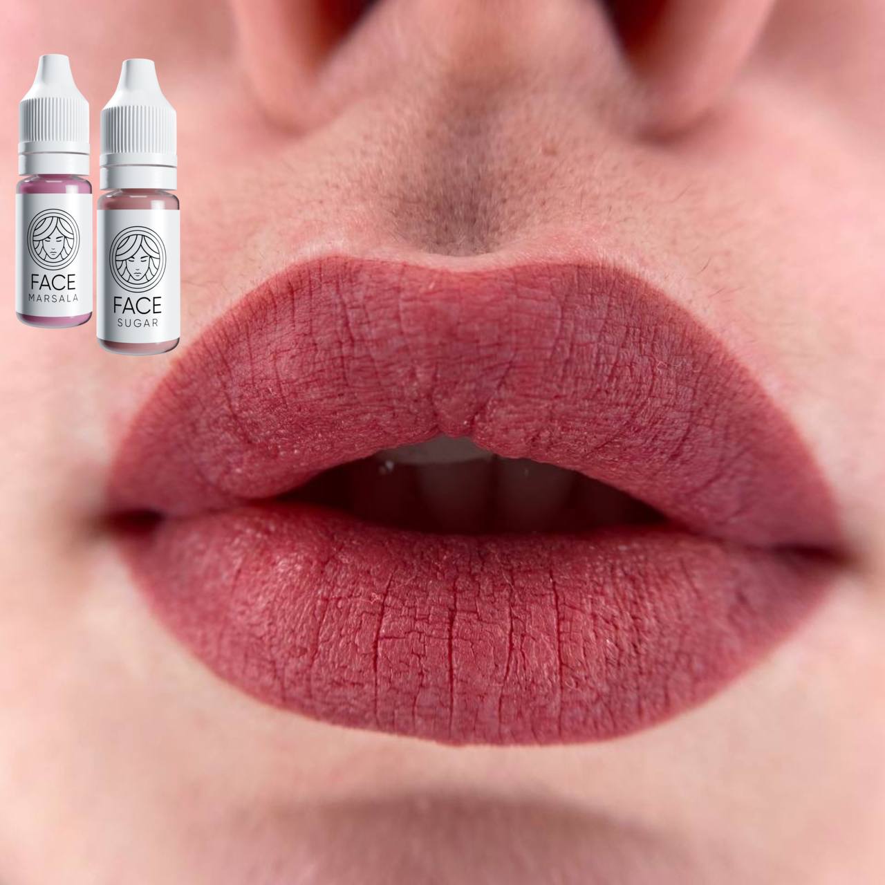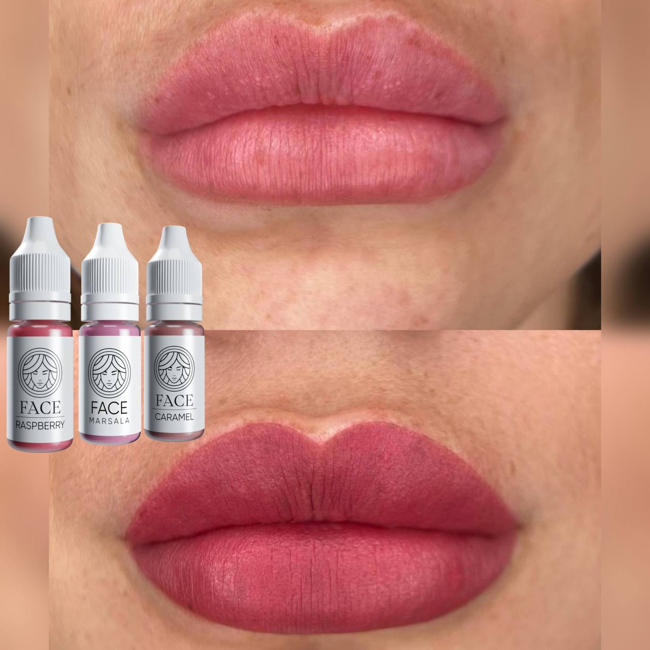 Marsala + Raspberry + Caramel – subtelny, ciepły różowo-brązowy odcień z delikatnym jagodowym akcentem. Na ustach tworzy efekt naturalnego rumieńca, nadając świeżość i objętość